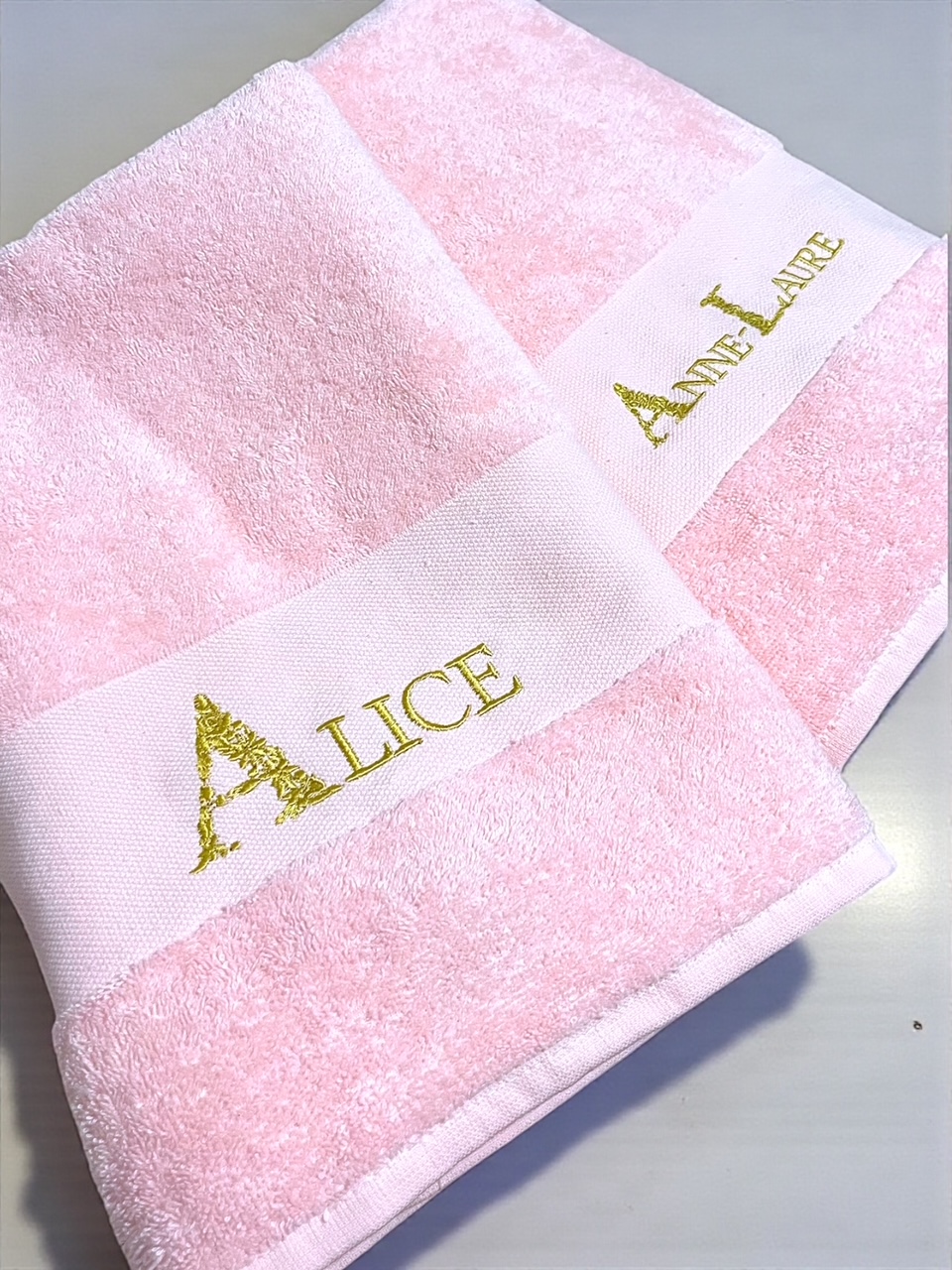 Apportez une touche d’élégance et d’unicité à votre quotidien avec nos serviettes brodées personnalisées. Chaque pièce est réalisée avec soin dans notre atelier, grâce à une broderie de haute qualité, durable et raffinée.