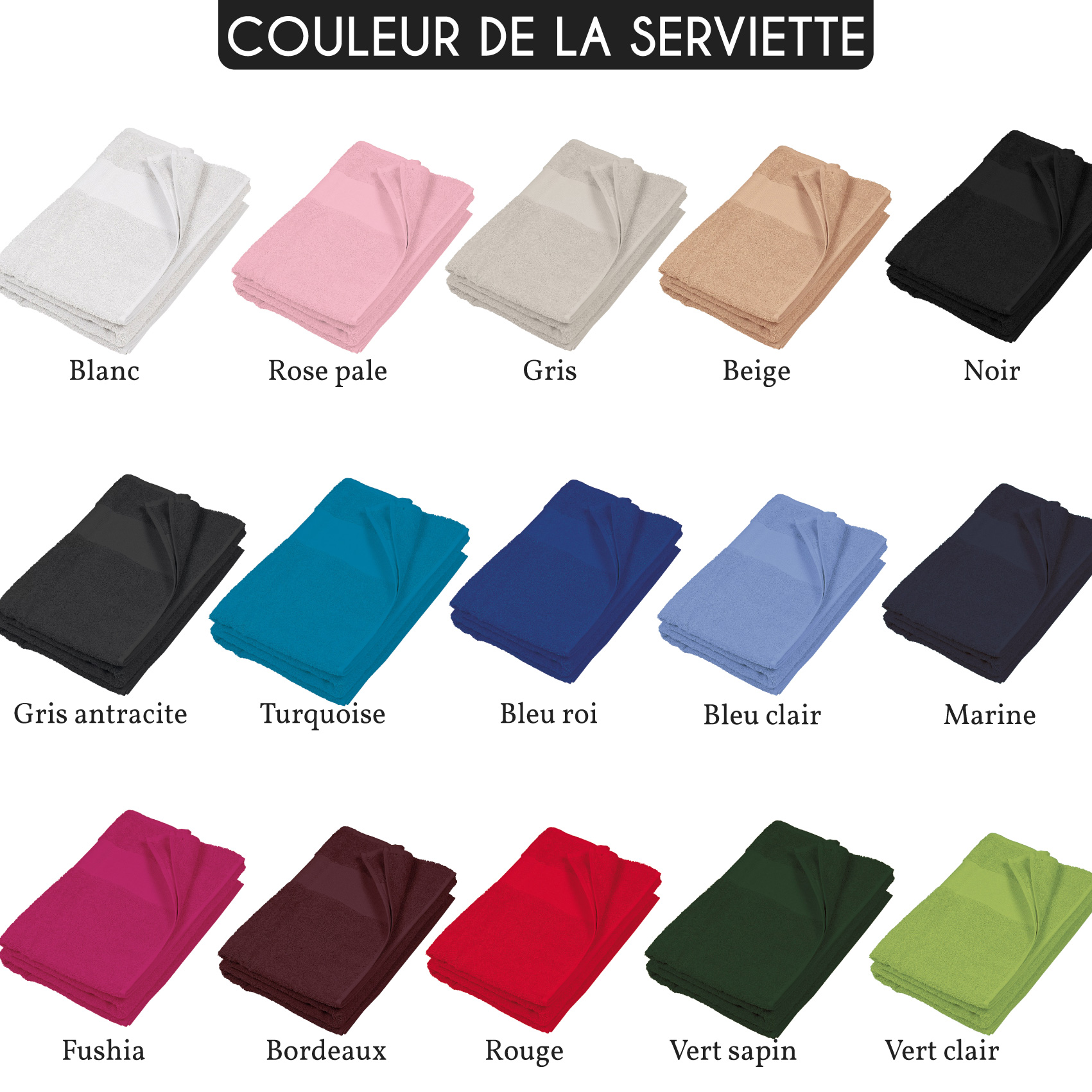 Chaque serviette est personnalisée à la commande, ce qui en fait un produit unique, pensé spécialement pour vous ou pour la personne à qui vous l’offrez.
